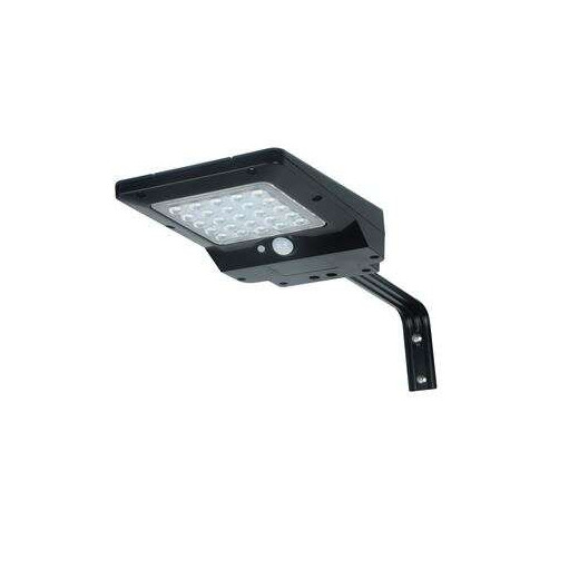 Elbat Foco Led Solar 4W. Características: -400 Lúmenes -Luz fria: 6000K -Sensor de movimiento -Angulo de detección: 120º hasta 6 metros -Batería: 3.7V, 2400mAh -Panel Solar 2.3W -IP65 -Ángulo: 140º -Incluye soporte en L -Instalación en pared o poste -Altura de instalación recomendada 2 - 3 metros. -Botón de encendido / apagado -Modo de trabajo -Durante las primeras 5 horas de trabajo si detecta movimiento en un rango de 6 metros se enciende al 100% (400lumens). Una vez pasados 20 segundos sin detección de movimiento baja la potencia de la luz y se queda fija -Despues de 5 horas de funcionamiento o cuando el nivel de batería es inferior al 30%, si detecta movimiento en un rango de 6 metros se enciende al 100% (400lumens). Una vez pasados 20 segundos sin detección de movimiento baja la potencia de la luz y se queda fija. Posteriormente pasados 5 minutos sin detección se apaga por completo. -Dimensiones: 22.4x13.7x4.1cm