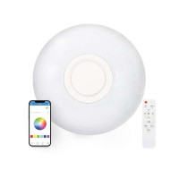 Es imposible no fijarse en él. Nuestro plafón conectado Rainbow incluye una enorme variedad de modos de luz RGB y temperaturas de color para que crear el ambiente que quieres no sea un problema. Además, incluye altavoz y modos de luz que bailan al ritmo de la música. DE MIL COLORES -Es imposible no encontrar el color que quieres. Gracias a su gama de colores RGB, elegir un color para cada ambiente es posible. Además, incluye varios modos de color dinámicos para convertir la habitación en una fiesta. A TODO VOLUMEN -¡Este plafón es la bomba! Incluye un altavoz integrado para que puedas reproducir tus canciones favoritas con una excelente calidad de audio. Además, puedes sincronizar las luces para que bailen al ritmo de la música con sus modos de color y música. TIC, TAC -Gracias a la app, es posible establecer temporizadores para que las luces se enciendan o se apaguen a la hora que tú quieras. ¡Todo bajo control! TÚ ELIGES CÓMO CONTROLARLO -Control remoto o app i-Link, ¿cuál es tu equipo? Incluye un control remoto con el que tenerlo todo bajo control rápidamente, y se puede conectar a la app i-Link para multiplicar sus posibilidades. Tú eliges cómo quieres controlar tu Rainbow. Detalles de producto DIMENSIONES -40 x 7 cm COLOR -Blanco BRILLO -2.200 lm TEMPERATURA DE COLOR -3000K - 6800K APP -i-Link CLASIFICACIÓN ENERGÉTICA -F CONTROL -APP / Control remoto ALTAVOZ -5 W