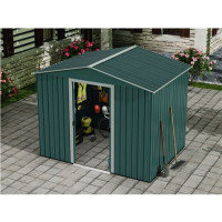Caseta de Metal con Puertas Correderas Características: -Útiles para quienes necesitan un espacio adicional seguro y resistente para almacenar objetos. -Dimensiones: 185.5x245x208cm, 4.5m2 (largo x ancho x alto) -Color: verde. -Paneles de acero galvanizado de 0.25mm de espesor. -Techo inclinado para facilitar la salida de agua. -Puerta de corredera. -Marco de aluminio y base de metal. -Fácil montaje y mantenimiento. -Peso: 81.5kg -Ancho puerta: 83cm Este producto se suministra en 2 bultos: -182x61.5x9.5cm - 40.90Kg -182x51x9.5cm - 33.60Kg