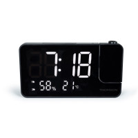 Radio Despertador Thomson con Proyección y Temperatura Interior Especificaciones: -Radio FM con escaneo automático -Alarma dual con función de repetición -20 estaciones almacenables -Proyección de hora ajustable -Visualización de hora, temperatura interior y humedad ambiente -12 h/24 horas -Temporizador de 5 a 90 min -3 configuraciones de brillo de pantalla de 0 a 100% -Cargador USB-C (5 V ? 1 A) -Pila de emergencia (batería CR2032) -Adaptador de corriente incluido ? 5 V 1,5 A 7,5 W