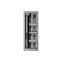 El destornillador Mi Precision ha ganado cinco premios internacionales de diseño, a saber, los premios iF, Red Dot, Japan Good Design, IDEA y Chicago Good Design. El destornillador eléctrico de precisión Xiaomi utiliza el mismo diseño emergente, con un mecanismo conveniente de empujar para soltar. Gracias al potente motor magnético con una velocidad de hasta 170 rpm*. y la caja de engranajes totalmente metálica, el destornillador tiene una concentricidad de punta de destornillador de no más de 0,2 mm* cuando gira, para una mayor eficiencia de precisión. El destornillador tiene un diámetro de eje de solo 16,4 mm*. La batería de litio recargable integrada es potente y duradera y puede procesar más de 400 tornillos de precisión con una carga completa. Las 24 puntas de destornillador de acero para herramientas S2 de alta calidad son duraderas y resistentes y tienen una dureza de hasta 60HRC. Los 24 tipos de brocas para atornillar de precisión son ideales para desmontar y montar la mayoría de los dispositivos electrónicos estándar y los nuevos electrodomésticos pequeños. De las 24, 6 puntas de destornillador de uso común tienen una longitud de 45 mm para usar en una amplia gama de aplicaciones complejas, como agujeros profundos y espacios estrechos. Aprenda a usarlo en muy poco tiempo: simplemente presione el botón delantero R para atornillar y el botón trasero L para desenroscar. El botón está hecho de caucho suave de TPU y requiere una presión suave con los dedos, lo que conserva su energía cuando se opera durante mucho tiempo. La estructura interna del cuerpo principal del destornillador se ha ajustado una y otra vez para proporcionar un centro de gravedad equilibrado y un manejo mejorado. La textura antideslizante 3D en la empuñadura aumenta la fricción para una sujeción más segura del destornillador durante el uso. El estuche de almacenamiento y el cuerpo del destornillador están hechos de aleación de aluminio de alta calidad, lo que los hace cómodos de sostener. El acabado de la superficie anodizada es antideslizante y resistente al sudor, y es menos propenso a la oxidación. El puerto de carga tipo C es compatible con los cables de carga de productos electrónicos populares, lo que hace que la carga sea más conveniente. Los indicadores al lado del puerto de carga le avisan instantáneamente cuando la batería está baja y muestran el estado de carga. Caracteristicas: -Torque de dos velocidades ajustable. -Contenedor de almacenamiento magnético. -24 puntas de destornillador de precisión de acero S2. -Más de 400 tornillos de precisión con una carga completa. Especificaciones: -Par máximo en el nivel I: 0.05Nm -Par máximo en el nivel II: 0.2Nm -Par manual máximo: 3Nm -Especificaciones de carga: 5V?0.14A -Tensión nominal: 3.7? -Batería de Litio: 350mAh -Tiempo de carga: 160?200 min -Sin velocidad de carga: 170 rpm -Dimensiones del producto: 201,8x74,2x25,2mm -Peso neto del producto: 353g -Dimensiones del destornillador: 159 x ?16,4 mm -Peso neto del destornillador: 59g Parámetros de puntas de atornillar: -Especificaciones de la broca para atornillar: C4x28mm, C4x45mm -Material de la punta de atornillar: acero S2 -Cabeza de phillips: PH000/PH00/PH0/PH1 -Pentagonal: P2/P5 -Maleficio: H0.7/H0.9/H1.5/H2.0 -Tipo W: W1.5 -Ranurado: SL1.5/SL2.0 -Tipo Y: Y0.6/Y1 -Torx: T2/T3/T4 -Tri-ala: 2.3 -Torx con agujero de alfiler: TH5/T6H/T8H/T9H/T10H Nota C4 x 45 mm para PH0/PH1/SL2.0/T8H/T10H/H2.0, C4 x 28 mm para todos los demás tipos