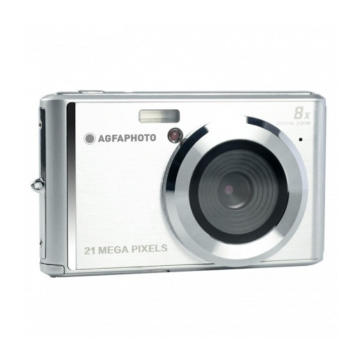 Vuelve un clasico de la fotografia. Las camaras compactas DC5200 de AGFA poseen el equilibrio perfecto entre comodidad y prestaciones, gracias a sus 21 megapixeles, su resolucion de video en HD y su bateria de litio de larga capacidad. Elegante y compacta, la camara digital Agfa Photo Realishot DC5200 le impresionara por su facilidad de uso. Su sensor CMOS captura fotos interpoladas de hasta 21 MP y videos HD. La pantalla LCD de 2,4 le permite encuadrar y visualizar con facilidad. Esta equipada con un zoom digital de 8X. Las fotos se almacenan en una tarjeta SD de hasta 32 GB (no incluida). Practico, funciona con bateria de litio y dispone de flash y funcion de temporizador automatico (2s, 5s o 10s). Caracteristicas: -Color: Plata -Sensor CMOS 21 Mpix -Zoom digital 8x -Pantalla LCD de 2.4 -Resolucion de video HD de 1280x720 pixeles -Bateria recargable de litio Especificaciones: -Resolucion: 21 MPix -Resolucion de video: 1280 x 720 pixeles, 640 x 480 pixeles, 320 x 240 pixeles -Zoom digital: 8 x -Tamaño de la pantalla en diagonal (cm): 6 cm -Tamaño de pantalla diagonal (pulgadas): 2.4 -Monitor: Pantalla TFT LCL -Tarjetas de memoria soportadas: SD -Tipo de producto: Camara digital