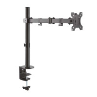 AISENS® - Soporte de mesa eco giratorio e inclinable para monitor/TV (3 pivotes, 1 brazo) de 13?-32?. Fabricado con acero de alta resistencia y pintado con pintura electrostática para un acabado perfecto. Se permite la instalación en la mesa a través de abrazadera o de tornillo pasante VESA Máximo: 100x100mm (Compatible con VESA de 75x75, 100x100mm). Carga Máxima: 8kg Angulo de Inclinación: -45º / 45º. Angulo máximo de giro: 360º (depende de la instalación y del espacio disponible). Ángulo máximo de rotación: 180º Sistema de gestión de cables: dispone de unos ganchos para poder agrupar los cables.