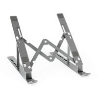 -Soporte de sobremesa ajustable para portátil o Tablet. -Este soporte es totalmente plegable y súper compacto. Se puede guardar fácilmente en una mochila, bolso o maleta cuando viaja y ahorra espacio. -Ofrece un total de 7 opciones de altura, lo que ayuda a corregir su postura y reducir el dolor de espalda, rigidez del cuello, dolores de muñeca y tensión ocular. Muy ergonómico y cómodo para leer y escribir. -Las patas de silicona antideslizantes protegen su dispositivo de posibles arañazos y deslizamientos, y las almohadillas antideslizantes inferiores evitan que el soporte se deslice en la mayoría de las superficies resbaladizas. -Fabricado con una resistente aleación de aluminio, la parte superior puede soportar un peso máximo de 3 kg -Este soporte es compatible con todos los portátiles / tablet de 10-15 pulgadas. -El diseño propone una gran disipación de calor y un flujo de aire natural para evitar que su portátil se sobrecaliente. -Color: Gris -Contenido -1 x Soporte de sobremesa plegable y ajustable para portátil o Tablet -1 x Funda para soporte
