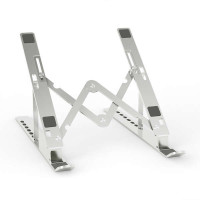-Soporte de sobremesa ajustable para portátil o Tablet. -Este soporte es totalmente plegable y súper compacto. Se puede guardar fácilmente en una mochila, bolso o maleta cuando viaja y ahorra espacio. -Ofrece un total de 7 opciones de altura, lo que ayuda a corregir su postura y reducir el dolor de espalda, rigidez del cuello, dolores de muñeca y tensión ocular. Muy ergonómico y cómodo para leer y escribir. -Las patas de silicona antideslizantes protegen su dispositivo de posibles arañazos y deslizamientos, y las almohadillas antideslizantes inferiores evitan que el soporte se deslice en la mayoría de las superficies resbaladizas. -Fabricado con una resistente aleación de aluminio, la parte superior puede soportar un peso máximo de 3 kg -Este soporte es compatible con todos los portátiles / tablet de 10-15 pulgadas. -El diseño propone una gran disipación de calor y un flujo de aire natural para evitar que su portátil se sobrecaliente. -Color: Plata -Contenido -1 x Soporte de sobremesa plegable y ajustable para portátil o Tablet -1 x Funda para soporte