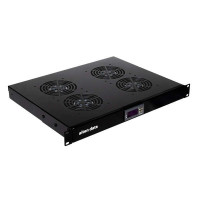 El termostato digital de 4 ventiladores de Aiten Data tiene un ancho estándar de 19? y 1U de altura. Su función es controlar la temperatura en el interior del armario rack y activar los ventiladores cuando se alcance el máximo seleccionado. Posee una pantalla digital donde se pueden controlar los grados, un interruptor on-off, conexión eléctrica 220V 50HZ, clavija tipo europeo, sensores de temperatura, y cuatro ventiladores de 12 cm de diámetro y de rodamiento de bola. Fabricado en acero laminado en frío y acabado en pintura negra antióxido y recubrimiento en polvo, posee anclajes laterales para un fácil fijación en los armarios rack. Materiales y Acabado - 1.2 mm Acero laminado en frío. - Recubrimiento en polvo. - Pantalla digital. - Interruptor. - Conexión eléctrica 220V 50HZ. - Clavija europea. - Sensores de temperatura. - 4 ventiladores de rodamiento de bola.
