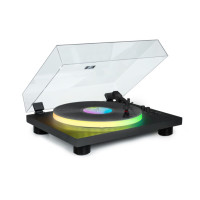 Tocadiscos Luminoso Bluetoooth BIGBEN con Función Auto-Stop Características: -Bluetooth 5.4 -Altavoces incorporados -Transmisión por correa -3 velocidades (33/45/78 RPM) -Parada automática -Aguja de cerámica -Preamplificado -Salida RCA -Diferentes efectos luminosos -Funda transparente extraíble -Entrada de alimentación CA 230 V (adaptador 12 V-1 A incluido)