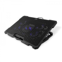 Con atril ajustable en 4 posiciones. Silenciosa y con 5 ventiladores con velocidad regulable para mantener fresco tu portátil. Características: -Atril ajustable con 4 posiciones: trabaja con mayor comodidad con tu ordenador portátil eligiendo el ángulo de inclinación para una mejor visión de la pantalla y una postura más cómoda. -Refrigeración regulable: controla la velocidad de giro de los 5 ventiladores mediante la rueda situada en la parte posterior. -Amplia compatibilidad: para portátiles de hasta 17.3? -Conexiones: cuenta con doble puerto USB para no perder el utilizado por el portátil para alimentar la base. Especificaciones: -Compatibilidad: Para portátiles de hasta 17,3? -Refrigeración: 5 ventiladores con regulador de velocidad -Conexiones: doble puerto USB para no perder el utilizado por el portátil para alimentar el atril -Iluminación: LED color azul -Material: plástico y rejilla de acero -Posiciones: atril ajustable con 4 posiciones -Alimentación: DC 5V/1A a través de USB con cable suministrado -Longitud del cable: 60 cm -Dimensiones: 410 x 295 x 25 mm (cerrado) -Peso: 830 gr
