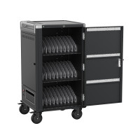 El carro de carga EW1700 le permite proteger, almacenar y cargar fácilmente hasta 30 dispositivos Tablets, Chromebook o portátiles con pantallas de hasta 17. Cuenta con un sistema de carga inteligente, estantes con ranuras para dispositivos flexibles y duraderas, un sistema de administración de cables/fuente de alimentación y, lo mejor de todo, está completamente ensamblado para una implementación rápida. Además, cuenta con espacios numerados para dispositivos y sus correspondientes espacios para suministro de energía para optimizar la organización. El carro también cuenta con puertas ventiladas con un mecanismo de bloqueo con llave de 3 puntos y la opción de agregar su propio candado para mayor seguridad. Especificaciones: -Color: Negro / Gris oscuro -Material: Acero laminado en frío de calibre 18 de alta calidad -El paquete incluye: Carro / Cable de alimentación de CA / Llaves -Dimensiones del producto: 600 x 580 x 1127 mm -Dimensiones del paquete: 650 x 630 x 1272 mm -Peso del producto: 82 kg -Peso del paquete: 98 kg -Gestión de cables: Sí -Sistema de carga: detección inteligente de energía -Dimensiones de la ranura del dispositivo: 422 × 34,3 × 286 mm (16,61 x 1,35 x 11,26 pulgadas) -Completamente ensamblado: Sí -Humedad de funcionamiento: 20% a 80% RH -Temperatura de funcionamiento: -10°C a 40°C -Humedad de almacenamiento: 20% a 90% RH -Temperatura de almacenamiento: -40°C a +60°C