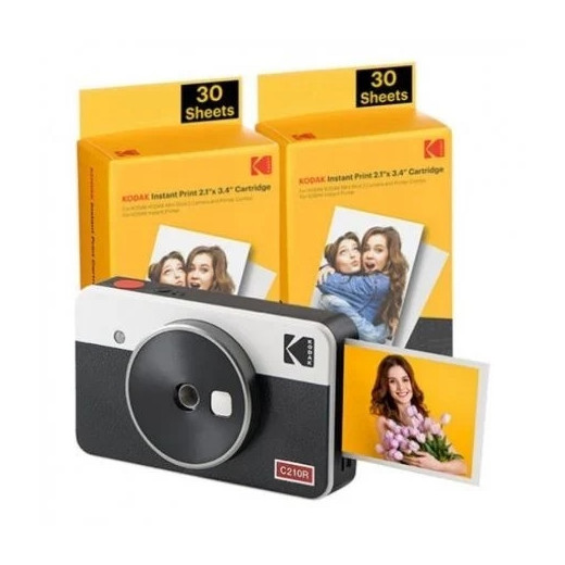 Lleve su Kodak Mini Shot 2 Retro a cualquier lugar y en cualquier momento. Puede tomar fotos e imprimirlas directamente desde la Kodak Mini Shot 2 Retro o conectarse con cualquier dispositivo móvil a través de Bluetooth e imprimir desde la galería de fotos. La tecnología de vanguardia 4pass de kodak mini shot imprime fotos reales al instante. La foto premium de 2.1 x 3.4 \'se imprime en capas de cinta + proceso de laminado, por lo que es a prueba de huellas dactilares, resistente al agua y la calidad durará mucho mucho en comparación con cualquier tecnología de impresión fotográfica. Aplicación móvil kodak gratuita. Descargue la aplicación kodak gratuita e imprima en cualquier momento y lugar. disfruta decorando tus recuerdos con pegatinas, marcos, filtros y amp, muchos más con la aplicación kodak, compatible con ios y android. Mejor impresora de fotografías. Qué mejor manera de celebrar con sus seres queridos que compartir sus recuerdos en fotografías de alta calidad. imprima su foto única que mantendrá sus recuerdos con sus seres queridos para siempre. Especificaciones: Cámara: -Balance de blancos: Auto -Efectos fotográficos: Filtro, montura -Estabilizador de imagen: Si -Tipo de sensor: Cmos Características: -Pantalla incorporada: Si -Tipo de visualizador: LCD -Diagonal de la pantalla: 4,32 cm (1.7\'\') -Servicio de asistencia mediante aplicación móvil: Si Características de administración: -Botón de restaurar: Si Detalles técnicos: -Espejo para selfies: Si -Método de impresión: 4pass technology -Papel de fotografía: Si -Reprint button: Si -Tamaño de imagen: 53,3 x 86,3 mm Diseño: -Color del producto: Blanco/Negro -Flash integrado: Si Energía: -Batería: Si -Batería recargable: Si -Número de baterías compatibles: 1 Dimensiones: -Altura: 80 mm -Profundidad: 30 mm -Ancho: 132 mm Contenido del embalaje: -Camara -Cables incluidos: USB Tipo C -Garantía: Si -Guía del usuario: Si -Manual: Si -Película instantánea incluida: Si -Pulsera: Si