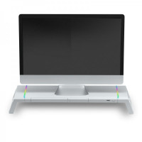 El soporte para monitor Mars Gaming MGS-ONE ofrece una experiencia visual mejorada y una organización eficiente del espacio de trabajo, sin necesidad de actualizaciones adicionales de hardware. Con sus dos tiras de iluminación CHROMA RGB y 10 modos avanzados de iluminación, este soporte transforma tu setup en un espectáculo visual, controlable fácilmente mediante un botón integrado. Gracias a su diseño ajustable, el MGS-ONE se adapta a tus necesidades con tres tamaños posibles, utilizando los laterales plegables. Además, proporciona máxima ergonomía al permitirte guardar el teclado y/o ratón debajo del soporte, liberando espacio en tu escritorio y posicionando el monitor a la altura perfecta para tus ojos. El MGS-ONE incluye múltiples extras, como un conector frontal USB 2.0 para conexión sin límites, un stand para smartphone/tablets en la posición ergonómica perfecta bajo el monitor, y un cajón incorporado para guardar llaves USB, tarjetas o pequeños accesorios. Características: -Iluminación CHROMA RGB con 10 modos avanzados. -Tamaño ajustable con laterales plegables. -Máxima ergonomía para un espacio de trabajo optimizado. -Múltiples extras para mayor funcionalidad. Especificaciones: Montaje: -Capacidad máxima de peso: 30 kg. -Número de pantallas soportadas: 1. -Tipo de montaje: Escritorio. Ergonomía: -Profundidad ajustable: Sí. -Rango de ajuste de profundidad: 410 -545 mm. -Iluminación LED: Sí. -Versión de conector USB: 2.0. Diseño: -Material de la carcasa: Acrilonitrilo butadieno estireno (ABS). -Color del producto: Blanco. Peso y dimensiones: -Ancho: 200 mm. -Profundidad: 545 mm. -Altura: 75 mm. -Peso: 1,52 kg. -Ancho del paquete: 442 mm. -Profundidad del paquete: 212 mm. -Altura del paquete: 91 mm. Empaquetado: -Cantidad por paquete: 1 pieza(s).