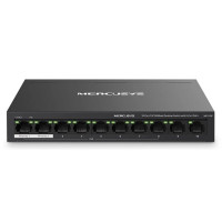 El Mercusys MS110P es un switch Ethernet de alto rendimiento con 10 puertos, ideal para expandir tu red doméstica o de pequeña oficina. Ofrece 8 puertos PoE (Power over Ethernet) que simplifican la instalación de dispositivos como cámaras IP y puntos de acceso Wi-Fi. Con una capacidad de conmutación de 1.2Gbps, garantiza una transferencia de datos rápida y fluida. Su diseño compacto y silencioso lo hace perfecto para espacios reducidos. Mejora tu conectividad con este switch versátil y fácil de usar. Características: -10 puertos: 10 puertos RJ45 de 10/100 Mbps con 8 puertos PoE+. -Dos cables en uno: con 8 puertos PoE+, transfiere datos y energía en un solo cable. -PoE+ de alta potencia: admita alimentación PoE de hasta 30 W para cada puerto PoE y 65 W para todos los puertos PoE*. -2 puertos de enlace ascendente: MS110P proporciona 2 puertos de enlace ascendente al activar el modo de aislamiento. Uno para conectarse a Internet y otro para conectarse al NVR. -Largo alcance hasta 250 m: aumenta la distancia de transmisión PoE a 250 m mediante el modo extendido*. -Modo de aislamiento: Un clic para dividir el tráfico de puertos específicos para la estabilidad y la seguridad. -Compatible con dispositivos alimentados: funciona con PD compatibles con IEEE 802.3af/at. -Carcasa de metal duradero: permite una disipación de calor eficiente y una larga vida útil de la red. -Plug and Play: fácil de usar y ahorra tiempo y esfuerzo. -Recuperación automática de PoE : reinicia automáticamente sus dispositivos alimentados por PoE caídos o que no responden. Especificaciones: Características de administración: -Tipo de interruptor: Gestionado -Administación basada en web: Si Puertos e Interfaces: -Cantidad de puertos básicos de conmutación RJ-45 Ethernet: 10 -Puertos tipo básico de conmutación RJ-45 Ethernet: Fast Ethernet (10/100) Conexión: -Estándares de red: IEEE 802.3af, IEEE 802.3at, IEEE 802.3x -Soporte 10G: No -Bidireccional completo (Full duplex): Si -Enrutamiento basado en políticas: Si -Soporte de control de flujo: Si -Auto MDI / MDI-X: Si -Ethernet LAN, velocidad de transferencia de datos: 10,100 Mbit/s -Auto-negociación: Si Transmisión de datos: -Tabla de direcciones MAC: 2000 entradas Diseño: -Montaje en rack: No -Apilable: No -Color del producto: Negro -Montaje de pared: Si Control de energía: -Fuente de energía: Corriente alterna -Fuente de alimentación incluida: Si -Voltaje de entrada AC: 220 V -Frecuencia de entrada AC: 50 Hz -Voltaje de entrada DC: 53.5 V -Corriente de entrada: 1.31 A -Consumo energético: 2,96 W -Consumo de energía (max): 77,52 W -Alimentación a través de Ethernet (PoE) -Energía sobre Ethernet (PoE): Si -Cantidad de puertos Power over Ethernet (PoE): 8 -Alimentación mediante Ethernet Plus (PoE +) Cantidad de puertos: 2 -Potencia por puerto de alimentación a través de Ethernet (PoE): 65 W Condiciones ambientales: -Intervalo de temperatura operativa: 0 - 40 °C -Intervalo de temperatura de almacenaje: -40 - 70 °C -Intervalo de humedad relativa para funcionamiento: 10 - 90% -Intervalo de humedad relativa durante almacenaje: 5 - 95% -Disipación del calor: 263,568 BTU/h Peso y dimensiones: -Ancho: 171 mm -Profundidad: 98 mm -Altura: 27 mm