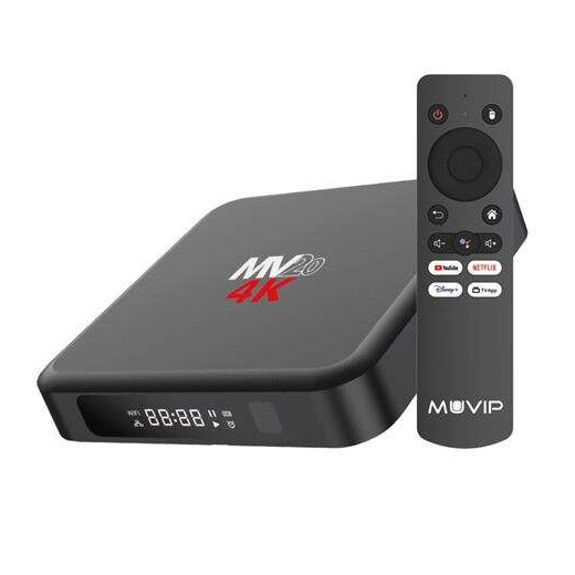 Muvip Mini PC Smart TV MV20 4K 5G - Android 12 - Quad Core - 4GB RAM - 32GB - Color Negro Especificaciones: -CPU: H618 Quad core ARM® Cortex? A53 -GPU: Multi-Core G31 GPU -RAM: 4GB DDR3 -ROM: 32GB -Resolución: 4K (3840x2160) -Soporta teclados y ratones USB e inalámbricos. -Memoria Externa: micro SD hasta 64GB (no incluida) -Sistema Operativo: Android 12 TV OS -Wifi : 2.4G /5G dual-band Wifi 802.11 a/b/g/n/ac -Bluetooth -Ethernet: 10/100M, standard RJ-45 -Control remoto bluetooth, admite uso con voz. -Puertos: -2 x USB 2.0 -1 x HDMI 2.0 -1 x DC 5V 2A -1 x RJ45 -1 x Salida audio óptica -1 x Lector de tarjetas Micro Sd (hasta 128gb) -Dimensiones: -105x105x20(mm) -Ficheros de Video Soportados: -RM,RMVB, PMP, FLV, MP4, M4V, VOB, WMV, 3GP, MKV -Ficheros de Audio Soportados: -MP3, WMA, OGG, AAC, M4A, FLAC, APE, AMR, RA, WAV -Alimentacion: -100~220V AC Input , 5V DC Output 2.A -Accesorios: -Cable HDMI -Mando control remoto bluetooth -Adaptador corriente 5V 2A -Manual en castellano