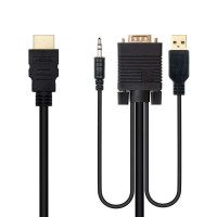 Nanocable Cable Conversor HDMI a VGA+Jack3.5+USB-A 1.8m - Color Negro Especificación: Cable conversor HDMI a SVGA con conector HDMI macho en un extremo y conector D-sub HDB15 macho con Jack 3.5 macho y USB-A macho Permite al usuario conectar una pantalla VGA a un dispositivo equipado con salida HDMI Soporta salida de señal analógica hasta 1920x1200@60Hz y 8-bit DAC Soporta HDCP 1.4 Señal de audio a través de Jack 3.5 Incorpora conexión USB-A para alimentar la salida VGA, en caso de ser necesario No requiere software ni controladores, una solución totalmente plug and play Longitud: 1.8 m Color: Negro NormativaS: RoHS Test de Funcionamiento: 100% testado Contenido del paquete: 1 x Cable conversor HDMI Información del embalaje: Bolsa retail con autocierre Peso aprox.(kg): 0,112 Medidas aprox.(mm) alto/ancho/largo: 195/230/40