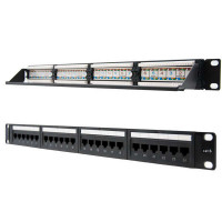 Panel de parcheo de 24 puertos para conexión RJ45 cat.6 UTP. Especificaciones: -Sistema de inserción: dual IDC -Ancho: 19 pulgadas, alto: 1U (44,45 mm) -Código de colores T568A y T568B. -Acepta cables de calibres 26, 24, 23 y 22 AWG. -Ciclos de vida de inserción mayores a 750. -Color: Negro -Normativas: RoHS -Test de Funcionamiento: 100% testado