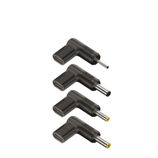 NGS Pack de 4 Clavijas USB-C Especificas para Portatiles Acer Funcionalidad Diseñado específicamente para alimentar o cargar ordenadores portátiles de la marca ACER utilizando clavijas de diferentes tamaños. Este pack ofrece una solución de carga versátil y adaptable para tus dispositivos. Chip Inteligente PD Integrado. Cada clavija cuenta con un chipset avanzado que soporta carga rápida USB Power Delivery (PD). Este chip no solo acelera el proceso de carga, sino que también proporciona una protección completa para la batería del dispositivo y el adaptador, garantizando una carga estable, segura, y alargando la vida de la batería. Diseño en Ángulo Recto. Las clavijas están diseñadas en un ángulo recto para evitar que los cables se doblen, lo que resuelve problemas de espacio limitado entre dispositivos. Este diseño también facilita la inserción del cable en áreas de difícil acceso y prolonga la vida útil del cable. Portabilidad Este pack es ligero y compacto, lo que lo hace fácil de transportar. Puedes guardarlo de forma segura en tu mochila, cartera, bolso, maletín o cajón de escritorio, eliminando la necesidad de llevar un cargador/adaptador de corriente pesado. Compatibilidad Soporta carga rápida de 100 W, 90 W, 65 W, 45 W y otras transmisiones de corriente PD. Es compatible con una amplia gama de dispositivos ACER, asegurando que siempre tengas la clavija adecuada para tu portátil. Especificaciones: Dimensiones de las Clavijas: Este pack incluye cuatro clavijas de diferentes tamaños para garantizar la compatibilidad con cualquier modelo de ACER: 3.0x1.1mm, 5.5x2.1mm, 5.5x2.5mm, 5.5x1.7mm