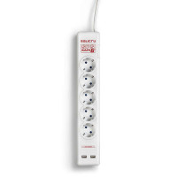 La Salicru Regleta SPS SAFE 5+ es una regleta de protección eléctrica de última generación que cuenta con 5 tomas Schuko. Además de proteger tus dispositivos de sobretensiones, esta regleta también incluye un cargador USB con 2 puertos y una capacidad de carga de 2,4 A a 5 VDC. Con una disipación máxima de energía de 306 J y una máxima corriente de pico de 12 kA, esta regleta garantiza una protección eficiente. También cuenta con características adicionales como protección infantil en las tomas, indicador de control de sobretensiones y posibilidad de fijación mural. Su diseño en color blanco y su grado de protección IP20 la hacen una opción segura y estética para tu hogar u oficina. Especificaciones técnicas ENTRADA -Tensión nominal 250 V -Frecuencia nominal 50/60 Hz -Protección Sí, rearmable SALIDA -Nº salidas 5 -Tipo de salida Schuko -Corriente nominal (A) 10 -Cargador USB 2 ports / 2,4 A / 5 VDC -Disipación máxima de energía (F-N, N-T y F-T) (J) 306 -Máxima corriente de pico 12 kA -Máxima tensión de pico 6000 V -Tiempo de respuesta < 1 ns -Filtro EMI/RFI (rango de frecuencia) - -Interruptor de encendido/apagado Sí -Posibilidad de fijación mural Sí -Longitud cable de alimentación (m) 1.5 -Protección infantil en las tomas Sí -Tomas orientadas para fácil conexión Sí -Indicador control de sobretensiones Sí -Protector eléctrico activo Sí -Protección eléctrica Fusible -Protección eléctrica inteligente Master / Slave No -Incluye marca-cables y cierre recoge cables Sí -Tecnología MOV Sí -Dispositivo cubrecables - organizador No -Espacio adicional para tomas de gran tamaño No -Una toma schuko siempre alimentada No -Master/Slave No GENERALES -Grado de protección IP20 NORMATIVA -Seguridad IEC-60884-1, EN-61643-11, EN-61643-21 -Certificaciones corporativas ISO 9001, ISO 14001, ISO 45001