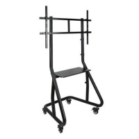 Soporte de suelo con ruedas para pantallas de 60-105. Características: -VESA Máximo: 1000x600 mm -Peso máximo soportado de pantalla: 100 kg -Sistema de seguridad antirrobo. -Ideal para pantallas interactivas. Especificaciones: Ergonomía: -Ajustes de altura: Si -Inclinable: No -Rango de ajuste para la altura de soporte: 1835-1735mm -Medida de bandeja: 634x280 mm -Distancia entre ruedas: 873x683 mm Diseño: -Color del producto: Negro -Ruedas con sistema de bloqueo -Bandeja multiusos -Sistema de seguridad antirrobo (posibilidad de colocar candados) Montaje: -Tamaño mínimo de pantalla: 60 -Capacidad máxima de peso: 100 kg -Tamaño máximo de pantalla: 105 -Adecuado para: TV -Compatible con VESA: Máximo 1000x600. Mínimo 400x400 Contenido del embalaje: -Soporte con bandeja -Kit montaje (incluye herramientas) -Manual de instalación
