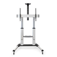 Tooq Soporte Suelo Ruedas Aluminio 60-100 - Color Plata Especificaciones Pantallas soportadas: 60-100 Compatible con VESA: Máximo 1000x600. Mínimo 200x200 Peso máximo soportado de pantalla: 100 kg Ángulo de inclinación: +5°/-10° Bandeja inferior para reproductor/DVD y bandeja superior regulable para webcam Rango de ajuste de altura del soporte: 1200-1650 mm Altura máxima con bandeja superior: 2366 mm Medida de bandejas: Inferior 430x335 mm Superior 285x150 mm Distancia entre ruedas: 1138x700 mm Ruedas con sistema de bloqueo Sistema de organización de cables Color: Plata Peso neto: 30 kg. Peso bruto: 33,40 kg Medidas del embalaje: 1206x655x250 mm Contenido del Paquete 1 x Soporte con dos bandejas 1 x Kit montaje (incluye herramientas) 1 x Manual de instalación
