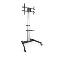 Tooq Soporte Suelo Ruedas TV HORIZ/VERT Hera 37-86 - Color Negro Especificaciones Pantallas soportadas: 37-86 Compatible con VESA: Mínimo 200x200. Máximo 600x400 Peso máximo soportado de pantalla: 50 kg Ángulo de inclinación: +5°/-10° Rotación de pantalla: 90° Bandeja regulable para reproductor/DVD Rango de ajuste de altura del soporte: 1200-1600 mm Altura máxima del soporte: 1820 mm Medida de la bandeja: 400x260 mm Peso máximo soportado de la bandeja: 5 kg Distancia entre ruedas: 848x610 mm Ruedas con sistema de bloqueo Sistema de organización de cables Color: Plata Peso neto: 14,40 kg. Peso bruto: 16,40 kg Medidas del embalaje: 805x280x210 mm Contenido del Paquete 1 x Soporte 1 x Kit montaje (incluye herramientas) 1 x Manual de instalación
