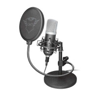 Micrófono USB profesional para estudio con estuche, con patrón de grabación cardioide de alta precisión, para música en streaming, podcasts, locuciones y música acústica. GXT 252 Emita ¿Es usted vlogger, cantante, gamer o simplemente le encanta Skype o chatear con sus amigos todo el día? No hay duda: ¡necesita un buen micrófono! Con el micrófono USB para estudio Trust Emita puede grabar fácilmente y conectarse con el resto del mundo. Sonido cálido, claro y rico en matices. Para crear podcasts, grabar música o hacer vlogs necesita resultados profesionales. Gracias al micrófono USB para estudio Trust Emita podrá cantar, rapear o grabar instrumentos acústicos con la seguridad de conseguir un sonido claro y cálido. El patrón de grabación cardioide registra la mayoría de sonidos desde la parte frontal del micrófono, mientras que el ruido ambiente apenas puede distinguirse. Esto le permite grabar con gran precisión, justo como desea. Sorprendentemente estable. Gracias al soporte de metal pesado y a la amortiguación de gama alta, el micrófono se mantiene estable en cualquier superficie. El soporte amortiguado evita que la vibración llegue hasta el pie del micrófono, de modo que podrá seguir grabando incluso cuando golpee el escritorio sin querer, los pequeños golpes serán absorbidos. Filtro de pantalla doble y tapa de espuma. ¿Odia tener que dedicar tiempo a editar sus grabaciones para minimizar las oclusivas (como la pe y la be) o los siseos? Con el filtro de pantalla doble incluido obtendrá una mejor calidad de voz. Así se asegurará de que todo el mundo le oirá claramente, sin la necesidad de una edición excesiva. La tapa de espuma elimina sonidos de aire, ideal para hacer entrevistas en lugares ventosos. Grabación móvil. Gracias al resistente estuche de viaje de aluminio, el estudio de grabación se desplaza con usted. Llévese el micrófono cuando viaje, el estuche le permitirá guardarlo con seguridad durante el transporte. El micrófono USB para estudio Trust Emita incluye conexión USB digital, lo que lo hace ideal para ser usado con cualquier ordenador o portátil. Simplemente conéctelo y empiece a grabar, no se necesita instalación ni controladores. Características: -Conexión USB digital, funciona instantáneamente con cualquier PC u ordenador portátil. -Reproducción de audio cálida, rica en matices y clara, para capturar voces e instrumentos acústicos. -Perfecto para podcasts, vlogs, locuciones, grabación de música o streaming en YouTube, Twitch y Facebook. -Patrón de grabación cardioide para grabación de alta precisión y un sonido claro sin ruidos de fondo. -Se suministra con estuche de aluminio duradero para un almacenamiento y transporte seguros. -Incluye soporte pesado de metal, suspensión de gama alta y pantalla grande, filtro de pantalla doble. -Cable USB desconectable de 1,8 m. Especificaciones: Micrófono: -Tipo: Microfono de estudio -Tipo sensor del micrófono: Condensador -Frecuencia de muestreo: 16 bits, 48 ??kHz -Tipo de dirección de micrófono: Cardioide -Impedancia: 200 ohmios -Sensibilidad: -35 dB -Nivel de presión sonora: 135 dB -Respuesta de frecuencia: 18 Hz - 21000 Hz -Color: Negro Puertos e Interfaces: -Tecnología de conectividad: Alámbrico -Interfaz del dispositivo: USB -Longitud de cable: 1,8 m Control de energía: -Fuente de energía: USB -USB con suministro de corriente: Si Compatibilidad: -Tipos de dispositivos compatibles: PC, portátil, consola de juegos -Consolas compatibles: PS4, PS5 -Plataformas de software compatibles: Windows, Chrome OS, Mac OS Peso y dimensiones: -Diámetro: 4,7 cm -Dimensiones del micrófono (A x L): 47 x 160 mm -Peso del micrófono: 300 g Contenido del embalaje: -Micrófono -Estuche -Cable USB -Filtros de rejilla -Soporte de suspensión -Pedestal para escritorio -Manual del usuario