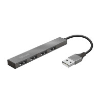 Hub USB para añadir 4 puertos USB adicionales al ordenador. Mejora del flujo de trabajo. Con el minihub USB de 4 puertos Halyx de Trust realmente puede sacar el máximo provecho del portátil o el ordenador. Amplíe el número de puertos del portátil y conecte en él múltiples dispositivos mediante sus 4 puertos USB. Fácil configuración y compatibilidad. El Halyx de Trust funciona con todo tipo de portátiles, MacBooks, PC y tabletas* que tengan un puerto USB. Utilizando un único puerto USB-A en el dispositivo, se pueden añadir 4 dispositivos USB, como el teclado o una unidad externa. El Halyx permite transferir datos rápidamente (USB 2.0) y este práctico complemento no requiere la instalación de ningún software: solamente hay que conectar, ¡y listos! Diseño ultracompacto. El minihub tiene un diseño compacto de solamente 7,3 mm de grosor, por lo cual es fácil llevarlo en el bolsillo o un bolso. Es perfecto para viajar. Su carcasa de aluminio aporta elegancia y durabilidad al equipo de escritorio y de trabajo. Si necesita conectar diversos dispositivos y periféricos cuando está lejos de casa, el Halyx es el artículo de oficina y viaje que está buscando. Características: -Añade 4 puertos USB 2.0 estándar para transferir datos o conectar dispositivos. -Funciona en todos los ordenadores de mesa o portátiles con un puerto USB-A. -Reducido y ligero, ideal para viajar. -Diseño elegante y resistente con carcasa de aluminio. -Admite USB 2.0 (hasta 480 Mbps). Especificaciones: General: -Número de puertos: USB 4 -Interruptor de encendido: No -Conductor necesario: No Conectividad: -Longitud del cable: 10 cm -Puerto Ethernet: No -USB versión 2.0 -Velocidad USB 480 Mbps Compatibilidad: -Tipos de dispositivos compatibles: Laptop, pc -Consolas compatibles: No -Plataformas de software compatibles: Chrome OS, Mac OS, Windows