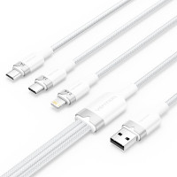 Vention Cable USB-A 2.0 a USB-C, Lightning, Micro-B 3A - 1.5m - Trenzado - Color Blanco
