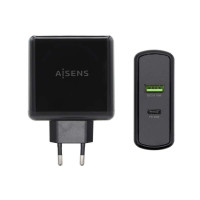 Aisens Cargador para Smartphone 48W 1x USB-C PD3.0 30W, 1x USB-A QC3.0 18W Cargador USB-C 48W para cargar portátiles, móviles, cámaras y tablets etc. Diseño muy elegante, moderno y práctico. Tecnología AI (chip inteligente) incorporado que detecta el tipo de protocolo del dispositivo conectado para maximizar tanto la compatibilidad como la velocidad de carga. Cargue su dispositivo USB-C o USB-A de forma fácil y sencilla. Múltiples protecciones contra sobrecarga, cortocircuito, lo que garantiza la máxima seguridad para su dispositivo. Este cargador puede cargar simultáneamente 2 dispositivos USB-A y USB-C a máxima velocidad. Especificaciones: -Cantidad de puertos USB-C: 1 -Cantidad de puertos USB-A: 1 -Entrada: 100-240V 50-60Hz 1.3A -Salida USB-C: 5.0V 3.0A, 9.0V 3.0A, 12.0V 2.5A, 15.0V 2.0A, 20.0V 1.5A -Salida USB-A QC3.0: 3.6-6.5V 3A, 6.5-9V 2.0A, 9-12V 1.5A -Potencia: 48W (USB-C 30W + USB-A 18W) -Nivel de eficiencia: VI -Compatible con la mayoria de los dispositivos USB-C o USB-A tales como portátiles, teléfonos móviles, smartphones, tablets, GPS, MP3, MP4, consolas de videojuego etc. -Soporta PD3.0 para poder cargar dispositivos inteligentes con tecnología PD3.0 de forma muy rápida. -Soporta QC3.0 para poder cargar dispositivos inteligentes con tecnología QC3.0 de forma muy rápida. -Aparte de soportar protocolo PD3.0 y QC3.0, este cargador también soporta los siguientes protocolos en su puerto USB-C: -PD3.0: 5V, 9V, 12V, 15V, 20V -QC3.0: 3.6V-12V (0.2V/paso) -QC2.0: 5V, 9V, 12V -HUAWEI SCP/FCP: 5V, 9V -SAMSUNG AFC: 5V, 9V -APPLE 2.4A: DP=2.7V, DM=2.7V -BC1.2: DP, DM -Está fabricado con material ignífugo e incluye múltiples protecciones contra sobrecarga, cortocircuito, lo que garantiza la máxima seguridad para su dispositivo. -Color: Negro -Normativas: RoHS, CE -Test de funcionamiento: 100% testeado