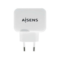 AISENS® - Cargador USB 17W 5V/3.4A, 2xUSB con control AI, Blanco Cargador USB 10W para cargar móviles, cámara y tablets etc. Cargador de pared con dos puertos de USB. Diseño muy elegante, moderno y práctico. Tecnología de AI (chip inteligente) incorporado que detecta la corriente de entrada de los dispositivos conectados para maximizar tanto la compatibilidad como la velocidad de carga (hasta 2,4 amperios por cada puerto USB). Cargue su dispositivo USB de forma fácil y sencilla a través del cable USB. Circuito de protección contra sobrecargas incorporado que protege su dispositivo USB ante cualquier daño debido a la inestabilidad del voltaje. Gracias a la salida de 17W 3,4A, este cargador de pared puede cargar simultáneamente dos dispositivos USB a máxima velocidad (hasta 2,4A/Puerto USB).