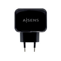 AISENS® - Cargador USB 17W 5V/3.4A, 2xUSB con control AI, Negro Cargador USB 10W para cargar móviles, cámara y tablets etc. Cargador de pared con dos puertos de USB. Diseño muy elegante, moderno y práctico. Tecnología de AI (chip inteligente) incorporado que detecta la corriente de entrada de los dispositivos conectados para maximizar tanto la compatibilidad como la velocidad de carga (hasta 2,4 amperios por cada puerto USB). Cargue su dispositivo USB de forma fácil y sencilla a través del cable USB. Circuito de protección contra sobrecargas incorporado que protege su dispositivo USB ante cualquier daño debido a la inestabilidad del voltaje. Gracias a la salida de 17W 3,4A, este cargador de pared puede cargar simultáneamente dos dispositivos USB a máxima velocidad (hasta 2,4A/Puerto USB).