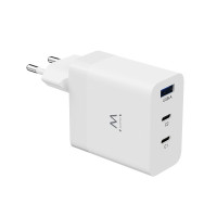 Carga rápida para tres dispositivos Recarga tu Macbook y al mismo tiempo tu iPhone y AirPods con el cargador USB-C Ewent EW1323 de 3 puertos de 65W. Potente y compacto gracias a la tecnología GaN Fast. Aprovecha hasta 65W de potencia cuando utilizas un solo puerto USB-C. Gracias a su tamaño, 50% menos que el cargador original de 61W, se puede guardar en un bolsillo o bolso, lo que lo hace ideal para el hogar y durante los viajes. Tecnología GaN Rápido. El cargador USB-C EW1323 integra la tecnología GaN para proporcionar una carga de alta potencia, segura y eficaz y ultra compacta que no sobrecalienta ni sobrecarga el dispositivo Triplica la carga Integra la tecnología PD y QC 3. 0 para proporcionar una carga potente y rápida a todos los dispositivos del mercado. Recarga rápida para iPhone y Samsung. Carga tu iPhone 13 de 0 a 50% en 30 minutos y Samsung S21+ de 0 a 50% en 28 minutos Ideal para viajes Recarga tus dispositivos durante el viaje. El cargador Ewent EW1323 tiene un diseño compacto y ligero, lo que lo hace ideal para viajes de negocios o de ocio. Características: -Voltaje de entrada: 100-240 V ~ 50/60 Hz, 2,0 A máx. Salida: C 1: 5,0 V 3 A, 9,0 V 3 A, 12,0 V 3 A, 15,0 V 3 A, 20,0 V 3,25 A (máx. 65,0 W) C 2: 5,0 V 3 A, 9,0 V 3 A, 12,0 V 3 A, 15,0 V 3 A, 20,0 V 3,25 A (máx. 65,0 W) USB-A: 3,6 V-6,0 V 3,0 A, 5,0 V 4,5 A, 6,0 V-9,0 V 2,0 A, 9,0 V/12,0 V 1,5 A (máx. 22,5 W) C1+C2: 45,0 WPD+20,0 WPD (máx. 65,0 W) C1+USB-A: 45,0 WPD + 22,5 W (máx. 67,5 W) C2 + USB-A: 5,0 V 4,5 A (máx. 22,5 W) C1 + C2 + USB-A: 45,0 WPD + 22,5 W (máx. 67,5 W) -Total: 65,0 W -Dimensiones: 109,3 mm x 37,8 mm x 33,8 mm