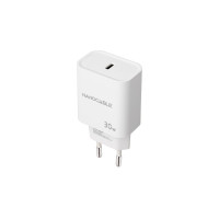 Cargador de Pared USB-C/PD 30W Especificaciones: -Puerto de carga: 1 USB-C -Voltaje de entrada: 100-240V 50/60Hz. 0.8A -Voltaje de salida USB-C (PD 30W): 5V/3A 9V/3A 15V/2A -Medidas del producto: 26x41x82 mm -Color: Blanco -Normativas: RoHS Contenido del paquete: 1 x Cargador USB 30W