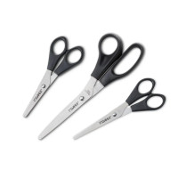Dahle Home Pack de 3 Tijeras de Acero Inoxidable 13, 15 y 20cm Características: -Práctica tijera para oficina y para trabajar en casa -Acero especial templado inoxidable para tijeras para cortes exactos -Hojas afiladas para un corte duradero y preciso -Mangos de tijera de alta calidad de plástico ABS irrompible para un trabajo agradable. -Práctico juego con tres tijeras (13, 15 y 20cm) para distintos trabajos de corte Especificaciones: -Tipo: Tijera doméstica -Tamaño: 13, 15 y 20cm -Mano dominante: Tijeras para diestros
