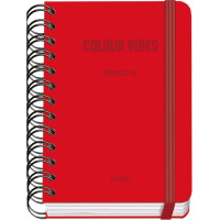 Dohe Colour Vibes Agenda escolar dia pagina. Todos los días de la semana ocupan un página excepto sábado y domingo que comparten hoja. La cubierta está fabricada en cartón forrado con papel impreso a todo color y plastificado mate con puntas redondeadas. Guardas impresas. Una agenda con wire?o metálico de color negro y cierre con goma elástica plana en color rojo. Especificaciones: -Tipo: Escolar -Interior: Dia pagina -Cubierta: Cartón forrado con papel impreso a todo color y plastificado. -Encuadernación: Espiral wire\'o de metal en color. -Hojas: Papel offset de 80 g/m2 y 4 hojas de pegatinas impresas a todo color. -Certificado FSC Mixto -Tamaño: 12 x 17 cm