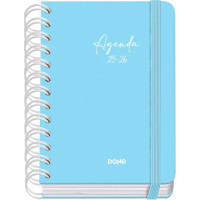 Dohe Serenity Agenda escolar dia pagina. Todos los días de la semana ocupan un página excepto sábado y domingo que comparten hoja. La cubierta está fabricada en cartón forrado con papel impreso a todo color y plastificado mate con puntas redondeadas. Guardas impresas. Una agenda con wire?o metálico de color blanco y cierre con goma elástica plana en color azul. Especificaciones: -Tipo: Escolar -Interior: Dia pagina -Cubierta: Cartón forrado con papel impreso a todo color y plastificado. -Encuadernación: Espiral wire\'o de metal en color. -Hojas: Papel offset de 80 g/m2 y 4 hojas de pegatinas impresas a todo color. -Certificado FSC Mixto -Tamaño: 12 x 17 cm