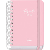 Dohe Serenity Agenda escolar dia pagina. Todos los días de la semana ocupan un página excepto sábado y domingo que comparten hoja. La cubierta está fabricada en cartón forrado con papel impreso a todo color y plastificado mate con puntas redondeadas. Guardas impresas. Una agenda con wire?o metálico de color blanco y cierre con goma elástica plana en color rosa. Especificaciones: -Tipo: Escolar -Interior: Dia pagina -Cubierta: Cartón forrado con papel impreso a todo color y plastificado. -Encuadernación: Espiral wire\'o de metal en color. -Hojas: Papel offset de 80 g/m2 y 4 hojas de pegatinas impresas a todo color. -Certificado FSC Mixto -Tamaño: 12 x 17 cm