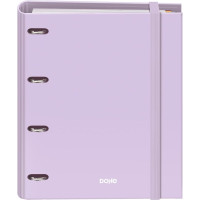 Dohe Serenity carpeta fabricada en cartón forrado con papel impreso a todo color y plastificado mate, guardas impresas. Carpeta con mecanismo de 4 anillas mixtas niqueladas de 35mm. con compresor de plástico y cierre de goma elástica ancha plana color morado. Interior de 100 hojas en papel offset de 90 g/m2 con 4 taladros y cuadrícula de 5mm con banda de color pastel. Especificaciones: -Tamaño: A4 -Recambio de 100 hojas con 4 taladros y cuadrícula de 5 mm con banda de color pastel. -Mecanismo de 4 anillas mixtas niqueladas de 35mm -Incluye: 4 separadores polipropileno, colores pastel calidad extra y sobre polipropileno transparente multitaladro, cierre velcro. -Con Certificado FSC Mixto. -Medidas: 280 x 320 x 40 mm