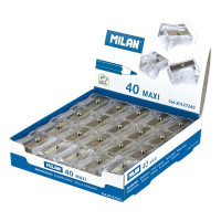 Sacapuntas MAXI sin depósito. El sacapuntas tiene una cuchilla de acero al carbono afilada y resistente, ideal para todo tipo de lápices. Artículo con cuchilla de seguridad. Este sistema evita que se pueda separar la hoja del cuerpo del sacapuntas, siendo óptimo para uso escolar. Especificaciones: -Cuchilla de acero al carbono afilada y resistente. -Para todo tipo de lápices -Cuchilla de seguridad -Óptimo para uso escolar -Transparente