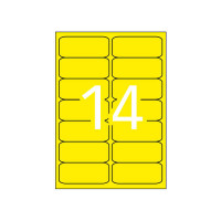 Las etiquetas amarillo flúor cantos romos tamaño 99,1 x 38,1 mm con adhesivo permanente son un producto ideal para destacar información relevante o marcar envíos. Estas etiquetas adhesivas vienen en un pack con 20 hojas (280 etiquetas) y tienen un acabado flúor que las hace muy llamativas. Características: - Etiquetas adhesivas de colores con acabado flúor. - Tamaño de 99,1 x 38,1 mm con cantos romos. - Adhesivo permanente. - Pack con 20 hojas (280 etiquetas). - Excelente calidad de impresión en impresoras láser o fotocopiadoras. Especificaciones: - Material: Papel adhesivo. - Color: Amarillo flúor. - Tamaño: 99,1 x 38,1 mm. - Adhesivo: Permanente. - Cantidad: 20 hojas (280 etiquetas). - Impresión: Excelente calidad en impresoras láser o fotocopiadoras. - Software: Descarga gratuita en www.apli.com para diseñar e imprimir todo tipo de etiquetas.