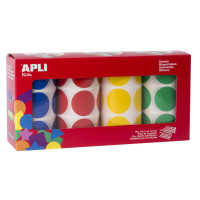 Pack de rollos de gomets redondos tamaño Ø 33 mm en colores surtidos de amarillo, azul, rojo y verde con adhesivo permanente. El pack contiene 4 rollos (uno por color) con un total de 2.832 gomets por pack. Cada rollo contiene 59 hojas pretroqueladas para una fácil separación. Este producto es perfecto para usar en guarderías, ya que ayuda a los más pequeños a desarrollar la psicomotricidad fina y trabajar varias capacidades y habilidades como el conocimiento de los colores, las formas geométricas y los tamaños, el desarrollo de la lógica y la creatividad, el trabajo en equipo o el dominio del espacio, entre otros. Características: - Pack de 4 rollos de gomets redondos tamaño Ø 33 mm en colores surtidos de amarillo, azul, rojo y verde con adhesivo permanente. - Cada rollo contiene 59 hojas pretroqueladas para una fácil separación. - Un total de 2.832 gomets por pack. - Perfecto para usar en guarderías para desarrollar la psicomotricidad fina y trabajar varias capacidades y habilidades. Especificaciones: - Cumple con las normas EN-71 y a la cadena de custodia FSC. - Adhesivo base agua. - Libre de disolventes. - Papeles ECF (Elemental Chlorine Free). - Materiales 100% reciclables.