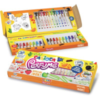 Carioca Perfume Pack de 30 Rotuladores Perfumados Características: -Súper caja regalo con 30 rotuladores perfumados de colores surtidos y pegatinas para colorear -Tinta perfumada y lavable. -Los aromas utilizados han sido rigurosamente seleccionados para recordar esencias naturales. -No contiene trazas de sustancias alergénicas. -Cada color tiene su propia esencia: regaliz, chocolate, melocotón, fresa, naranja, plátano, manzana, menta, anís, uva, lavanda, vainilla. Contenido: -12 uds. Rotuladores PERFUME punta cónica para doble trazo de escritura. -8 uds. Rotuladores PERFUME STAMPS con doble punta: maxi cónica y otra con plantillas. -10 uds. Rotuladores PERFUME MAXI con punta maxi cónica para doble trazo de escritura.