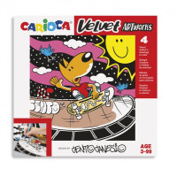 Carioca Velvet Artworks Pack de 4 ilustraciones de terciopelo para colorear en colaboracion con Cento Canesio Características: -Set de 4 ilustraciones de terciopelo para colorear -La suave textura guía la mano mientras se colorea -Ayuda a desarrollar la destreza y la creatividad -Realizado en colaboración con Cento Canesio