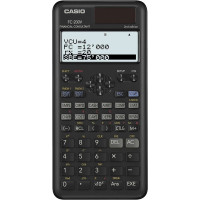 Casio FC200V Calculadora financiera. Resuelve los enigmas de los cálculos financieros con sus exclusivas funciones de gran alcance incorporadas. Tecla de modo directo y nueva operación. Pulse la tecla de modo directo integrada para cambiar entre los modos exclusivos cuando realice cada cálculo financiero. El modelo FC-200V incorpora una pantalla de 4 líneas de punto completo que permite introducir, confirmar, cambiar y corregir cada parámetro fácilmente. También ofrece la práctica función de presentación de marcadores de coma a cada 3 dígitos. Tecla de acceso directo. Los valores de parámetros o ajustes usados en los cálculos se pueden memorizar y se pueden recuperar los datos almacenados para usar en cálculos similares. Una función muy eficaz para cálculos repetidos. Caracteristicas: -Formato de entrada: V.P.A.M -Cálculos de funciones: trigonométricos, hiperbólicos, logarítmicos, exponenciales, de potencia / raíz cuadrada, inversos, de operador factorial, generador de números aleatorios. -Reproducción: Historial -Memoria: para respuestas (Ans), STO, RCL (A-D, X,Y, M (7)) -Cálculos de porcentajes -Ajuste del número en pantalla: Fix, Sci, Norm, símbolo separador de cada 3 dígitos -Ajuste de ángulos: Deg, Rad, Gra -Tabla de edición de estadísticas -Elementos de cálculo -Regresiones: lineales, logarítmicas, exponenciales, de potencia, inversas, cuadráticas -Cálculos financieros: interés simple, compuesto TVMn, P/Y, C/Y, evaluación de inversión (flujo de efectivo), amortizaciones, conversiones, cálculo de coste, precio de venta o margen de ganancia, cálculos por días. -Cálculo de bonos: precio de compra, rendimiento anual -Depreciación: método lineal y de porcentaje fijo, suma de los dígitos del año, saldo decreciente -Cálculo de punto de equilibrio: cantidad e importe de ventas del punto de equilibrio, cantidad de ventas con el interés esperado y con la tasa de interés esperada, margen de seguridad y grado de influencia operativa, combinada y financiera. Especificaciones: -Pantalla de 4 líneas: Matriz de puntos 31 * 96 -Dígitos de mantisa y exponente: 10 + 2 -Teclas de plástico -Alimentación: pilas AAA y panel solar -Nueva tapa deslizable -Dimensiones (Alt. x Anch. x Prof.): 12,2 x 80,0 x 161,00 mm -Peso: 103 g