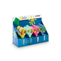 Tijeras infantiles coloridas con motivos adecuados para la edad. Características: -Tijera infantil con las hojas de corte decoradas. -Acero especial templado inoxidable. -Hojas redondeadas estampadas con atractivos motivos. -Mangos suaves ergonómicos revestidos de goma para un corte agradable. Especificaciones: -Tipo: Tijera infantil -Tamaño: 13 cm -Mango ergonomico -Puntas redondeadas -Colores: Surtidos -Expositor con 24 Tijeras infantiles (18 Tijeras para diestros y 6 para zurdos)
