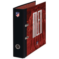Archivador A4 de palanca 282 x 318 x 70 mm Cubierta en cartón forrado con papel impreso a todo color y plastificado brillo. Guardas impresas. Mecanismo de palanca metálico niquelado de máxima calidad, con rado y ollao en el lomo. Con Certificado FSC Mixto. Características: -Tamaño: A4 -Ollao y rado -Con palanca de máxima calidad y cantoneras metálicas. -Diseño: Atlético de Madrid Atleti