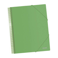 Carpeta con 20 fundas tamaño A4 y tapa de polipropileno opaco de 800 micras. Fundas transparentes en interior de 80 micras. Espiral de plástico de color y gomas elásticas a juego.