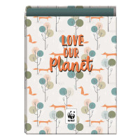 Carpeta fabricada en cartón forrado con papel impreso a todo color y plastificado brillo, guardas impresas. Tamaño Folio 264 x 340 x 60 mm. Carpeta con mecanismo de 4 anillas mixtas niqueladas de 40mm. Cuenta con el certificado FSC Mixto