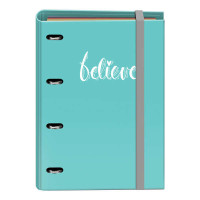Carpeta recambio tamaño A4 con 4 anillas mixtas de 35 mm. Cierre de goma elástica. Con recambio de 100 hojas de 90 gr y 4 taladros. Cuadrícula de 5 mm con banda de color en 6 colores. Con 4 separadores, sobre velcro de polipropileno y compresor.