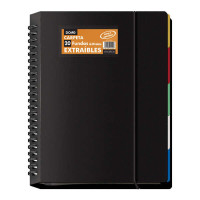 Carpetas con fundas en tamaño Din A4, con tapa de polipropileno opaco. Fundas transparentes extraíbles de 23 perforaciones, en el interior. Se sirven en bolsa individual.