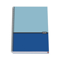 Cuaderno en espiral de tapa dura tamaño A4 ( 228 x 300 mm. Cubierta en cartón forrado con papel impreso a todo color y plastificado mate. Guardas impresas. Cuaderno con espiral metálico color Negro. Interior de 100 hojas en papel offset de 90 gramos microperforadas, con taladros y cuadrícula de 5 mm con banda de color. Con certificado FSC Mixto
